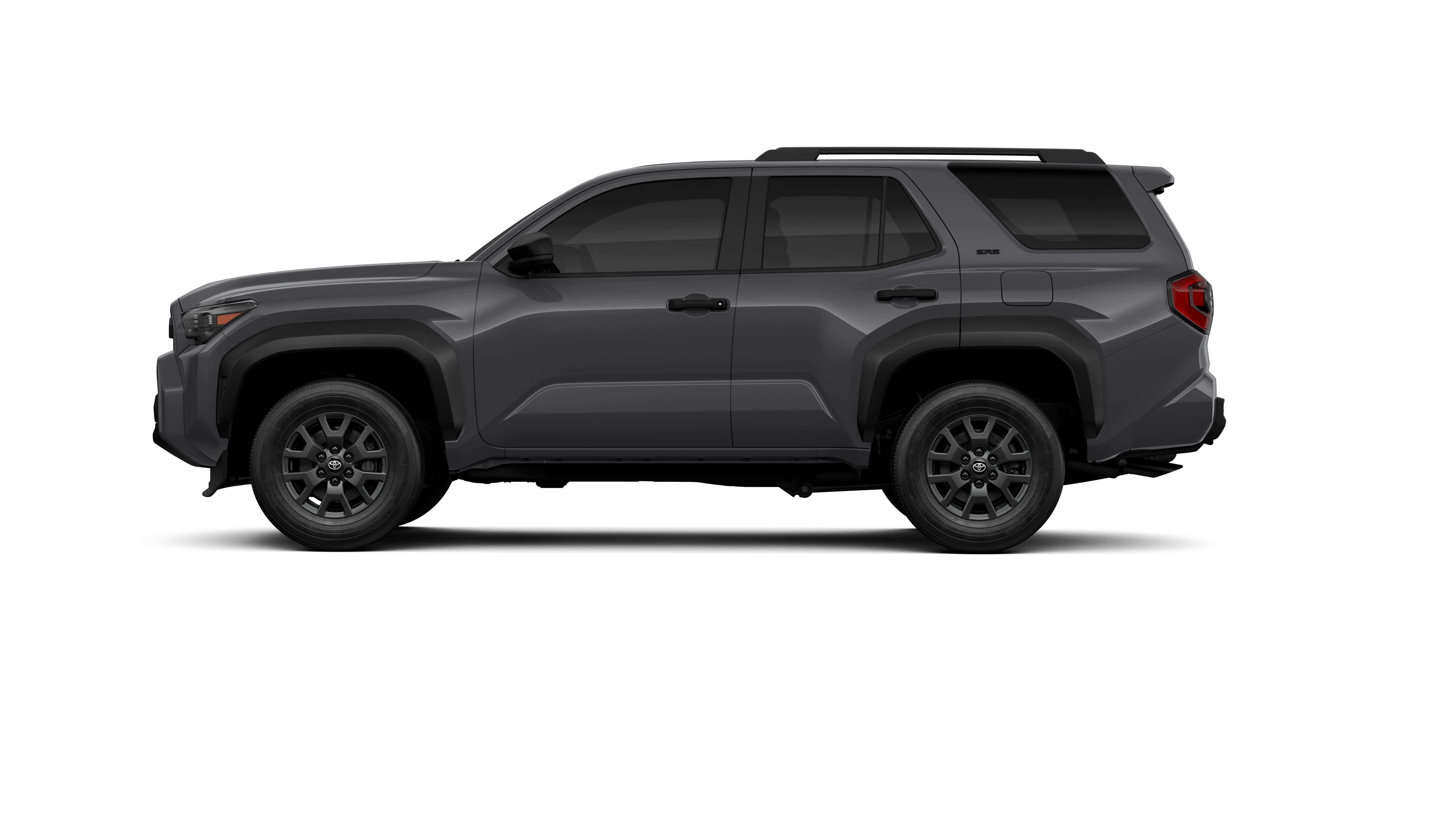 - Black horizontal-bar grille, mirror caps, door handles and overfenders; color-keyed rear spoiler; black "SR5" and "4RUNNER" badges