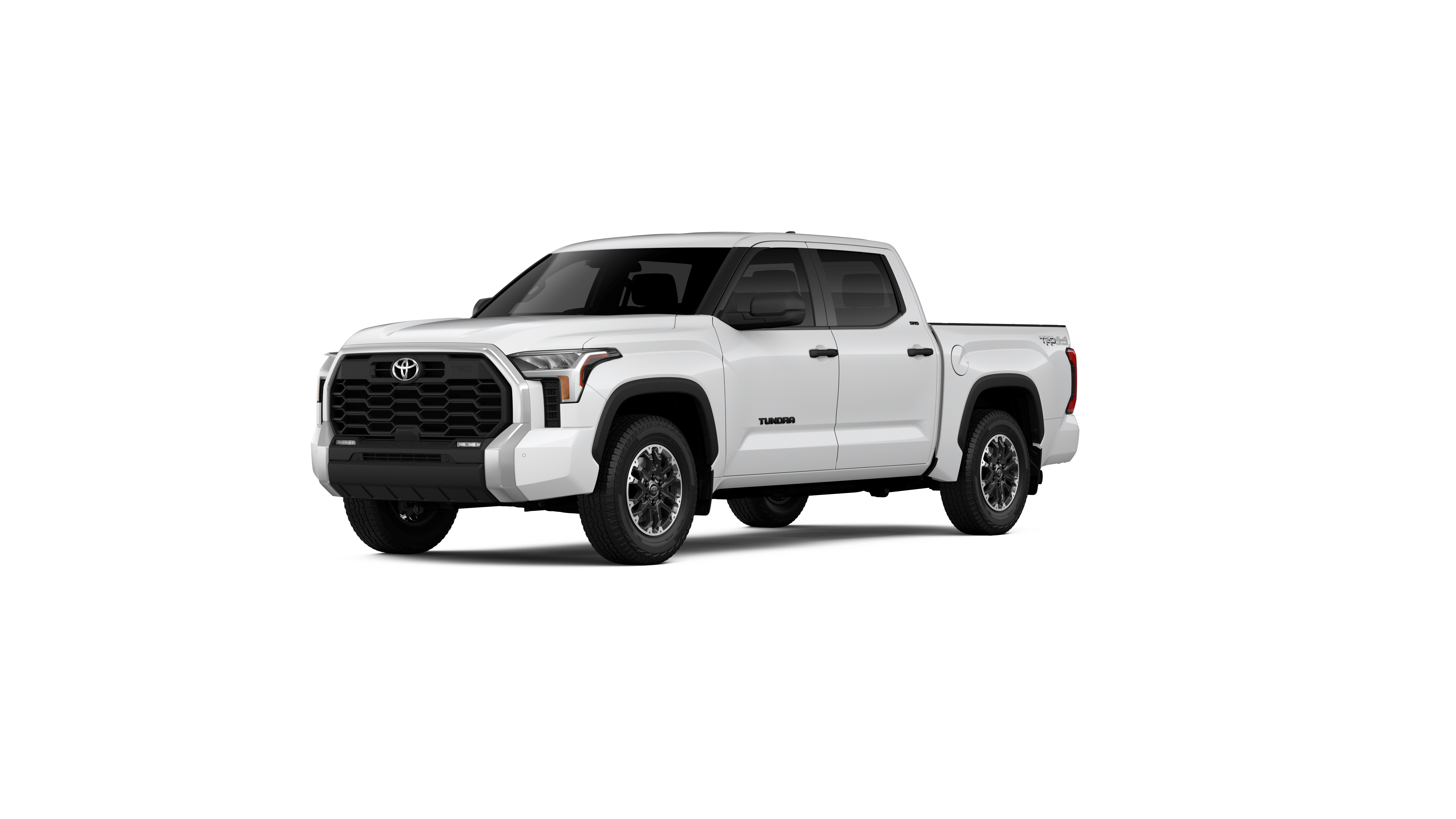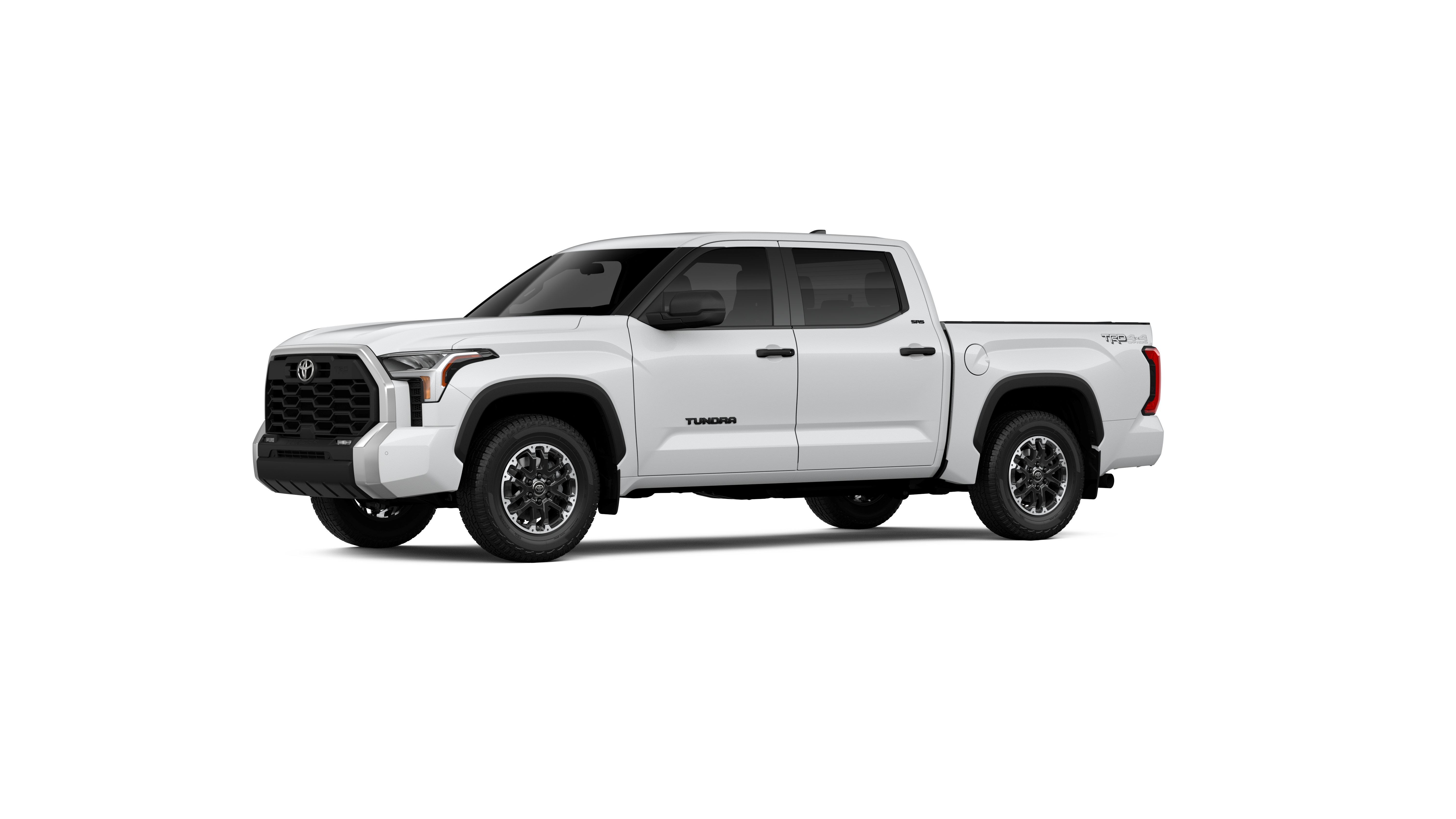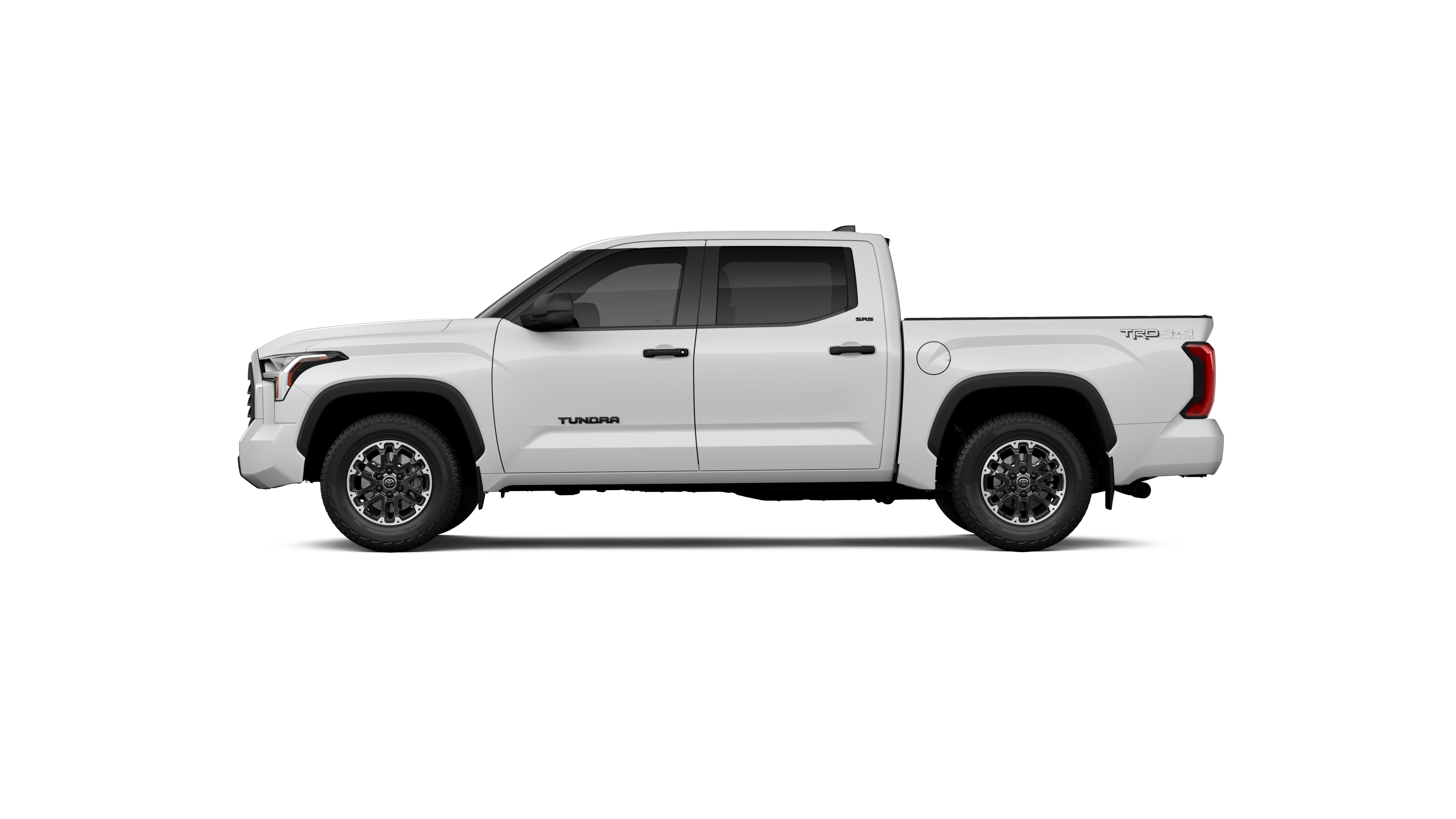 - Chrome "TUNDRA" and "SR5" door badges; black door handles, window molding, mirror caps, tailgate spoiler and overfenders